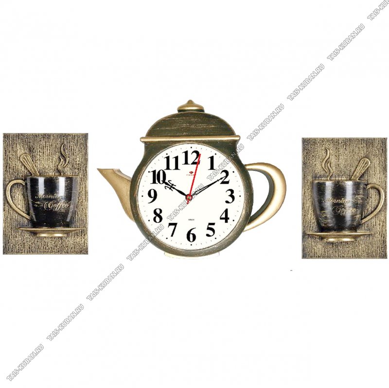 Часы (пластик) фигурн.(34х38см) Часы (пластик) фигурн.(34х38см) "Кофейник" бронза,п/у (10)