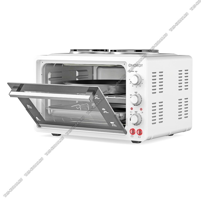 Духовка 35л 1600Вт 2 конфорки (1000/700Вт),3реж,рег.t60-250, конвекция, решетка, противень 2 штуки (круглый/прямоугольный), таймер, индикатор работы, цвет белый (1)