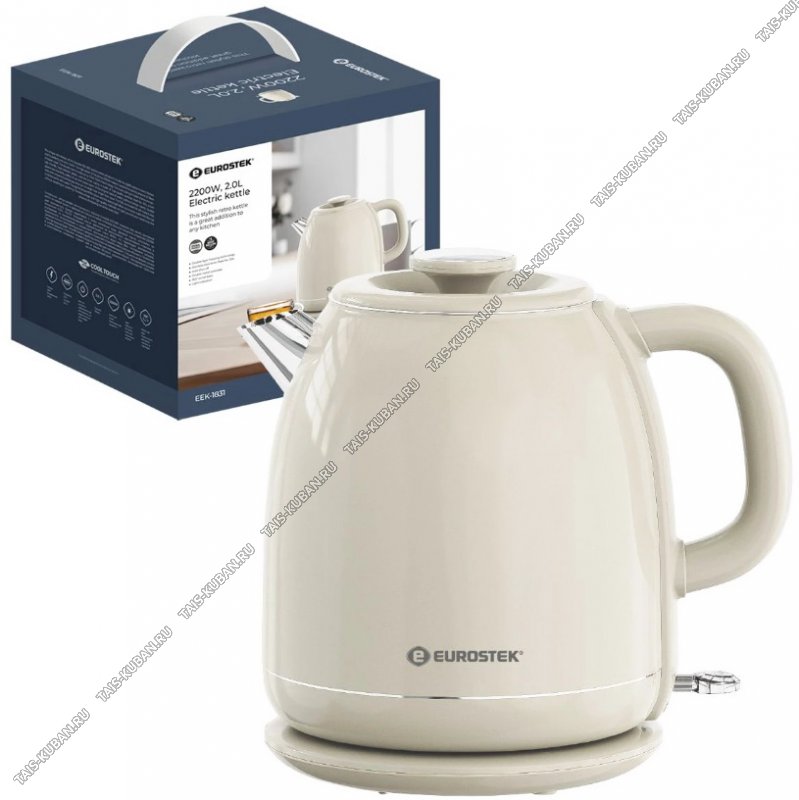 Электрический чайник Eurostek EEK-1831Объем 2,0 л , мощность: 2200 Вт, технология двухслойного корпуса COOL TOUCH, дисковый нагревательный элемент, длина шнура 0,9 м, световая индикация работы, вращения чайника на подставке на 360, автоматическое оооотключение при закипании и при недостаточном количестве воды.