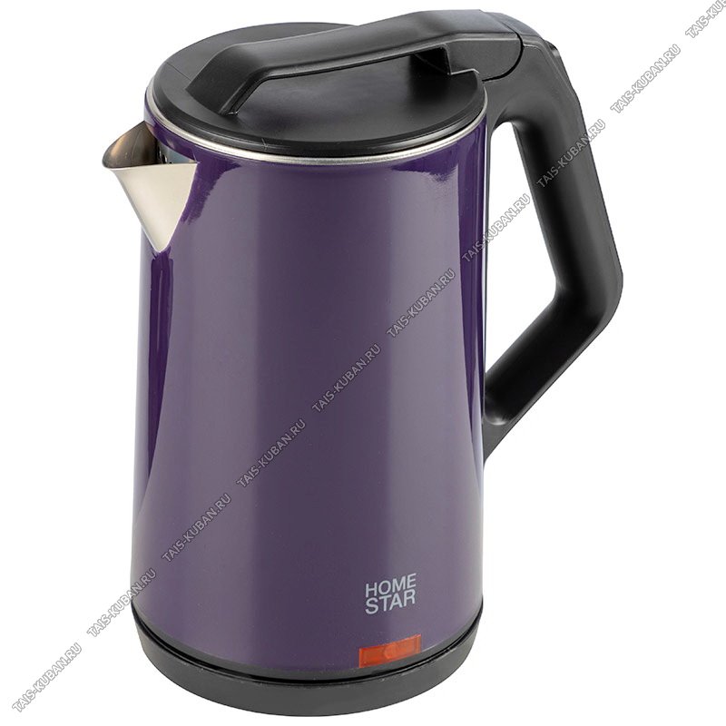 Чайник пластик+нержавеющая сталь 1,8л 1500Вт диск,двойная стенка (внутри-нерж.сталь),автоотключение,защита без воды,поворот на 360`,фиолетовый (12)