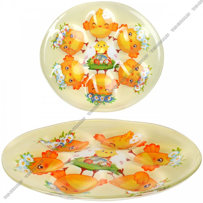 Тарелка стекло для 6яиц d18см "Цыплята"