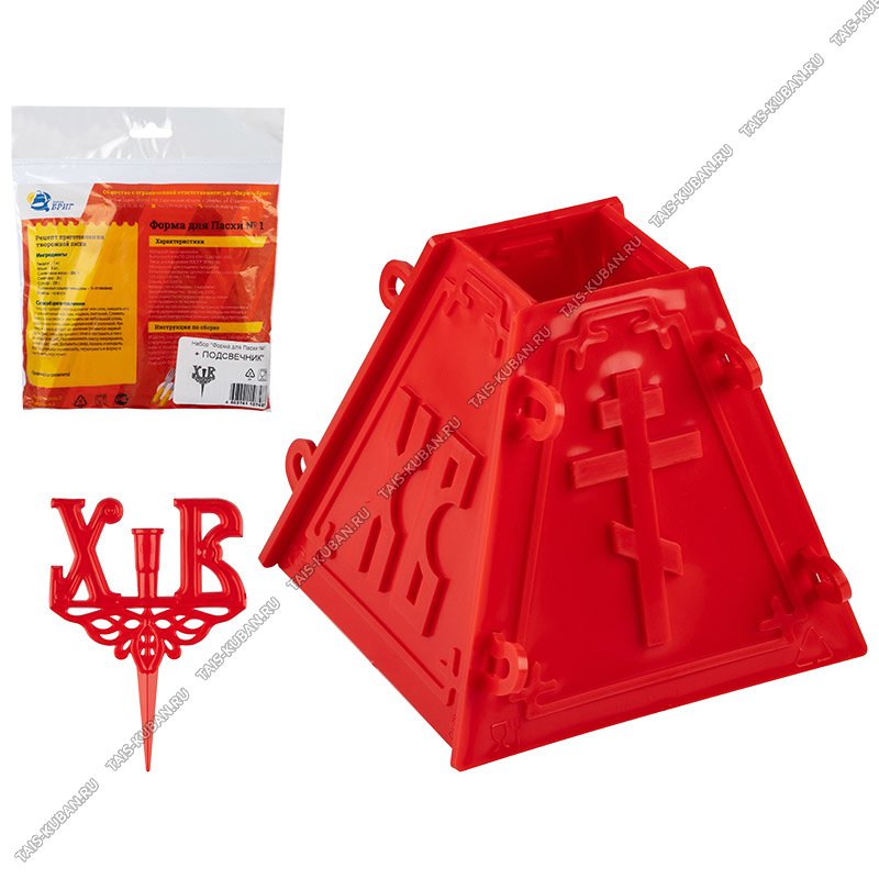 Форма для пасхи (пластик) 0,84л h11см верх 5х5см, них 12х12см и подсвечник "ХВ" 6х8см. Цвет красный и желтый