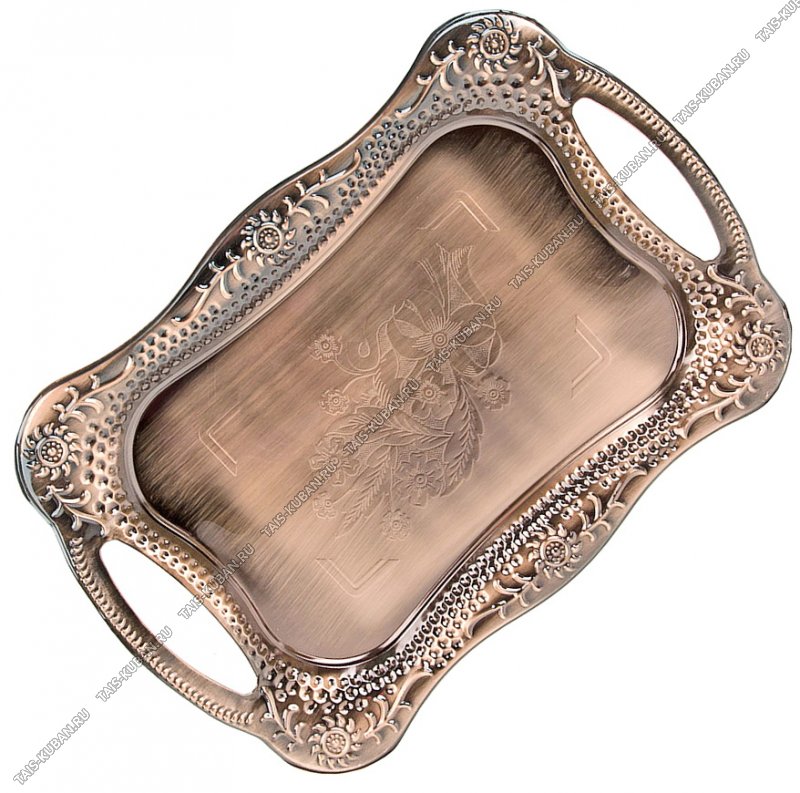 Поднос "Nouvelle/Ромашки" прямоуг.36х25см,медь,2 вырубн.ручк,гравир. узор,гальванич.покрыт,уп.пакет (40)