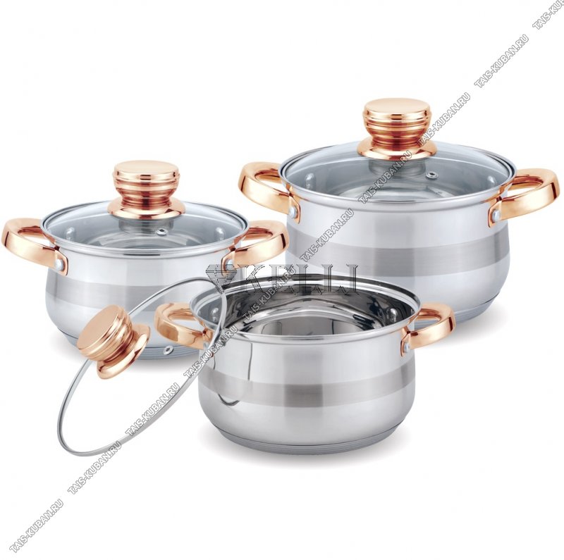 НАБОР кастрюль 3шт (цил. 2,1/3.0/4.0л) "золотые ручки,кнопка",стекл.крыш, 5-ти сл.инд.дно,зеркал.полир (4)