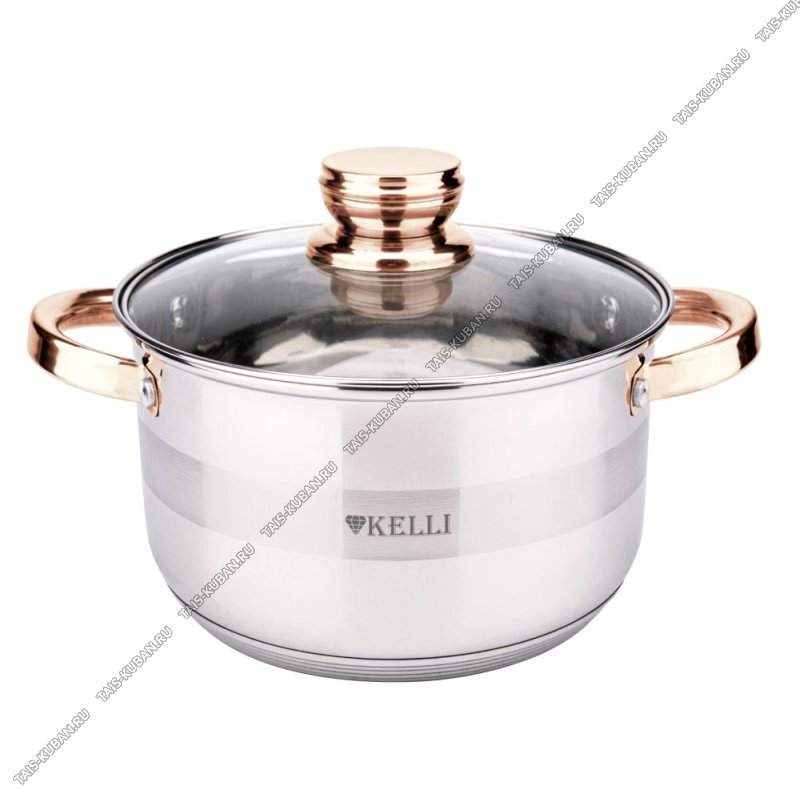Golden Кастрюля 6,1л d24см,ф.цилиндр,индукц.капсул.дно,ручки-дуги полые "золото",стекл.крыш ручка-кнопка полая "золото",матов/зеркал.полир,п/у (6)
