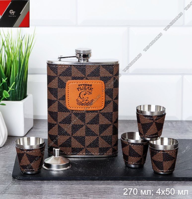 Фляжка 270мл, 4стопки 50мл и воронка, подарочная упаковка
