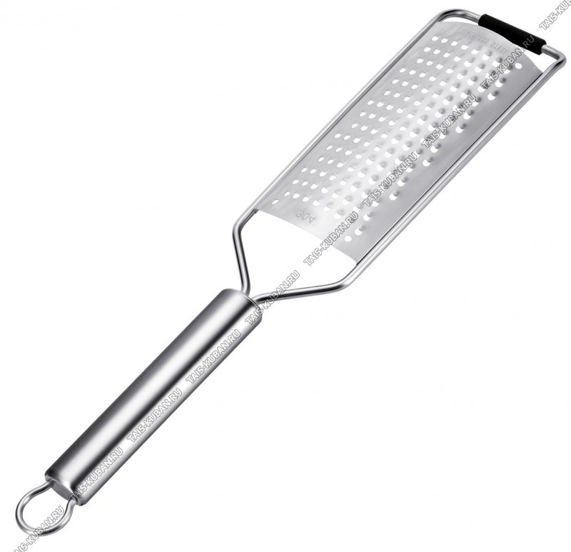 Терка 1-но сторон ручная (мелк лезв) L32,5 16х6,5см,нерж.сталь 304,прорезин.вставк,кольцо д/подвеш (12)