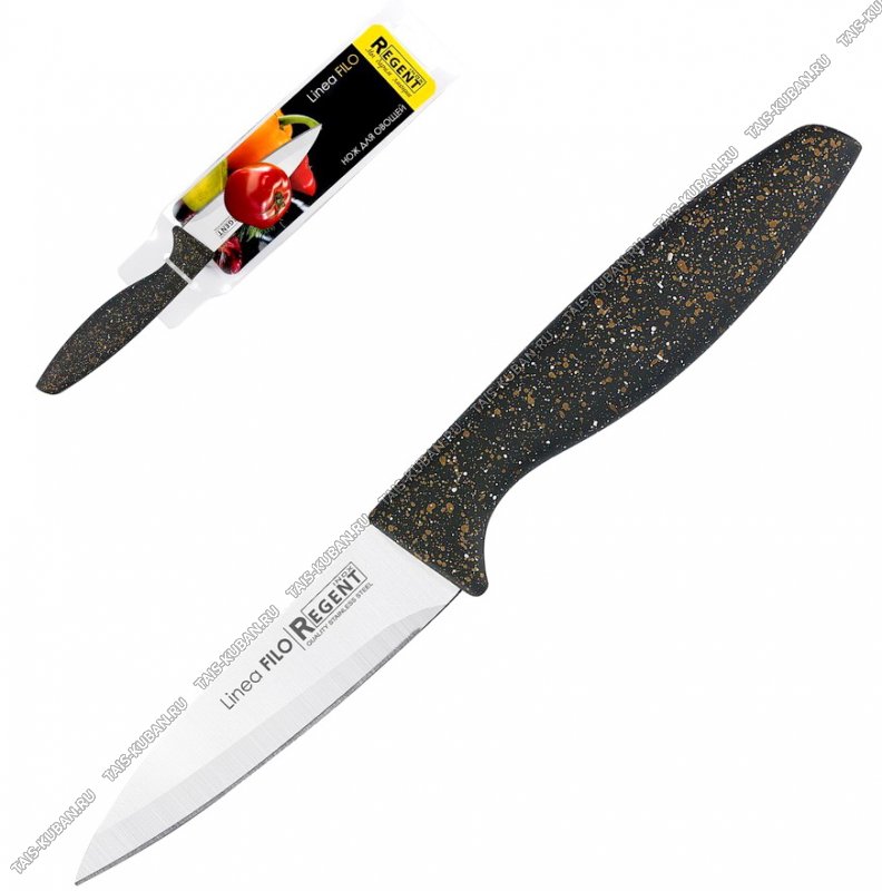 лезвие нержавеющая сталь 3Сr13,бакелитовая ручка,черный с бело--золотым крапом,блистер,Regent