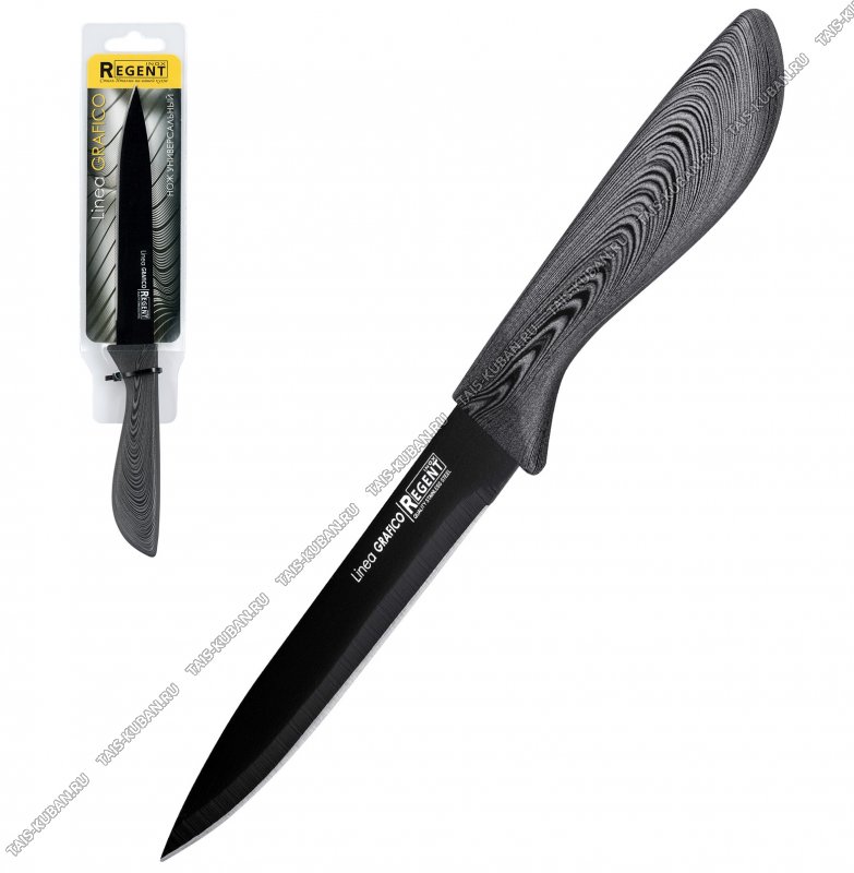 лезвие нержавеющая сталь 3Сr13,пластиковая прорезиненная ручка "дерево",черный/графит,блистер,Regent