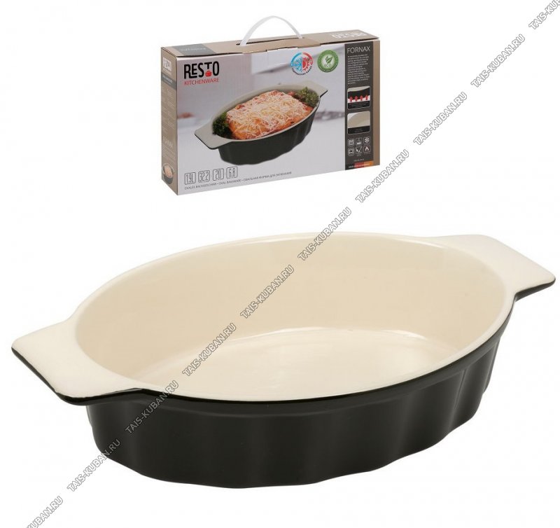 Керамика Форма овал 2л черн/крем (32х20 h7см) борт-волна,2ручк,п/у (6)