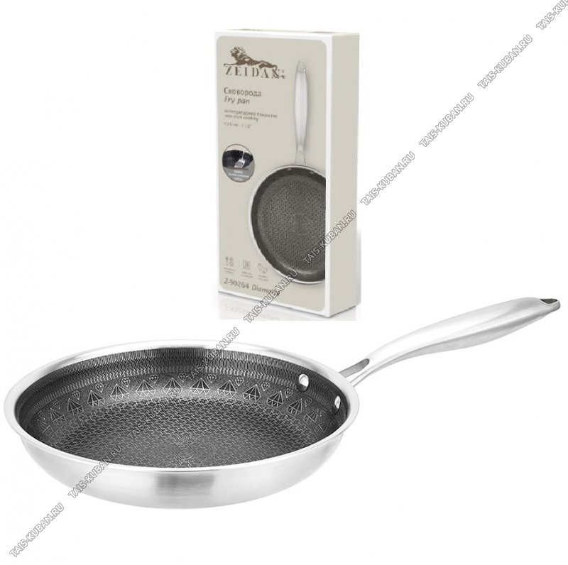 Diamond (нержавеющая сталь с антипригарным покрытием) Сковорода d20см, конусный борт h4см, индукционное капсульное дно, ручка цельная, внутренний узор "соты", матовая, подарочная упаковка