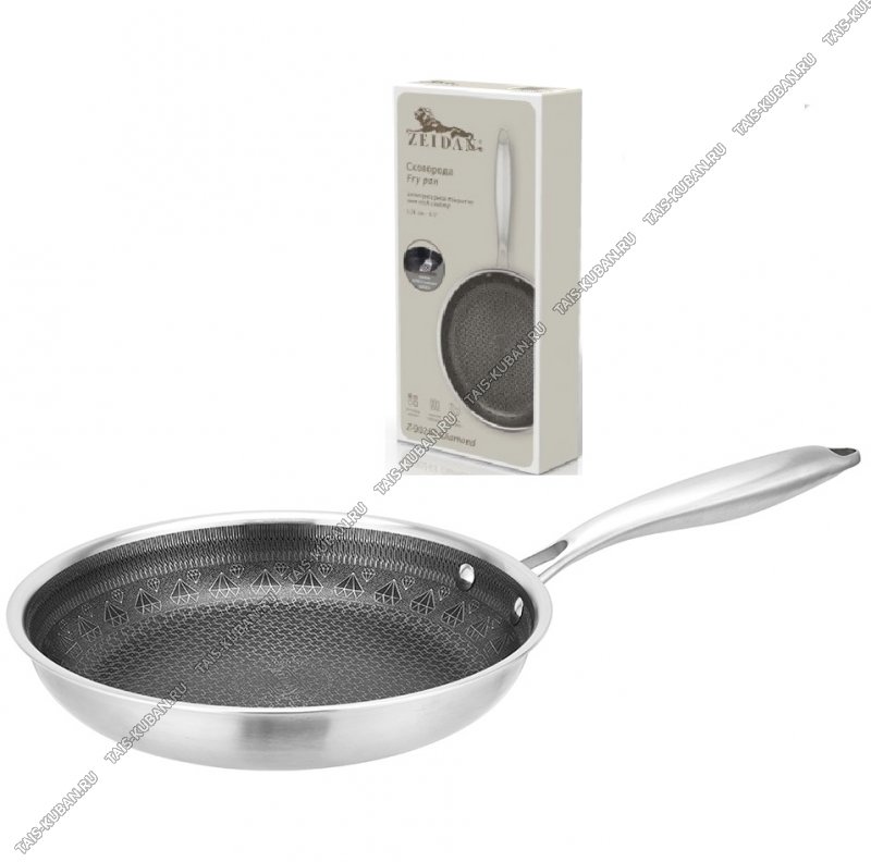 Diamond (нержавеющая сталь с антипригарным покрытием) Сковорода d24см, конусный борт h4,5см, индукционное капсульное дно, ручка цельная, внутренний узор "соты", матовая, подарочная упаковка