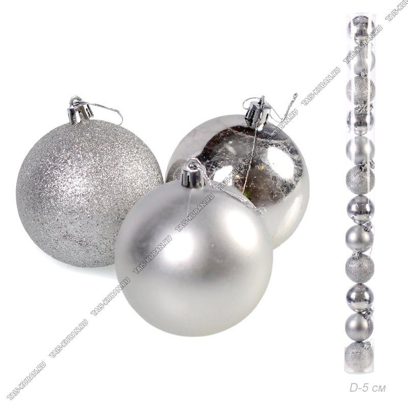Ёлочный шар набор 12шт d5см, серебро "Ассорти"