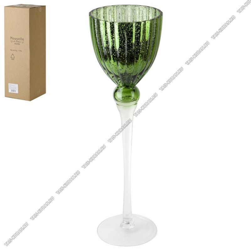 Подсвечник-бокал (стекло) на высокой ножке h40см "Massimo/Зеленый" (чаша d10,5 h11см)