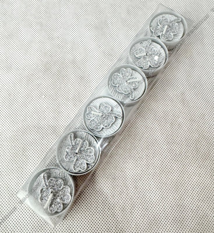 Свеча (парафин) чайная н-р 6шт "Клевер серебро" d4см,блестки, п/у