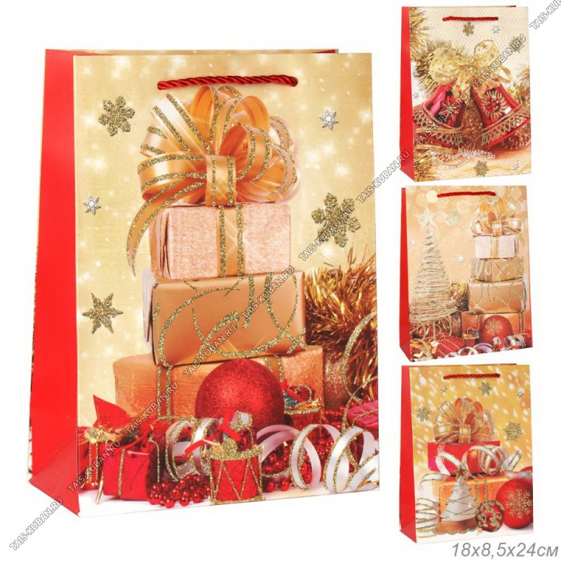 Пакет бумажный (h24х18см) "Новый год/Подарки" (12)