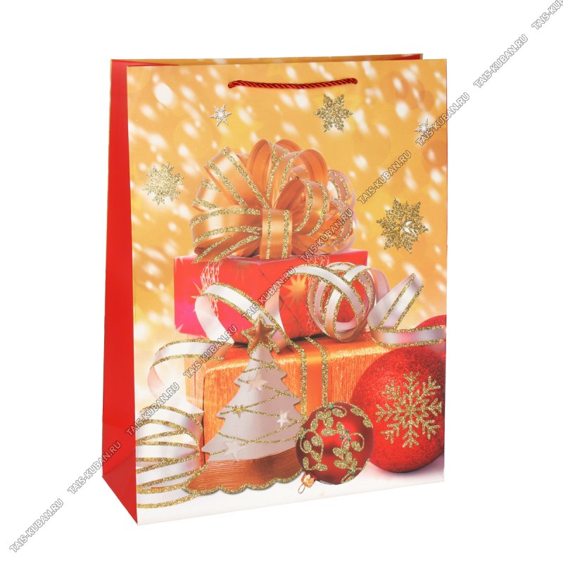 Пакет бумажный (h40х31см, дно12см) "Новый год/Подарки,ёлка,шары" (12)