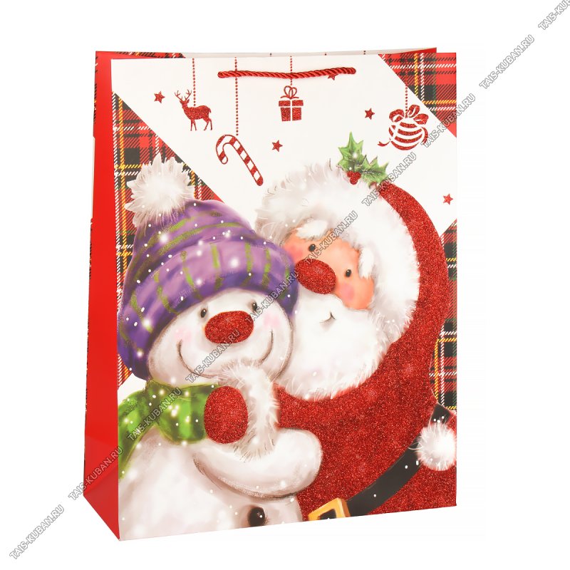 Пакет бумажный (h32х26см, дно10см) "Сказка/Санта и снеговик" (12)