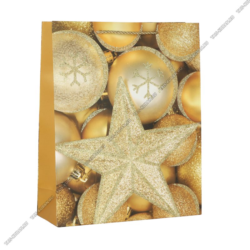 Пакет бумажный (h40х31см) "Золотой Новый год/Золотая звезда" (12)