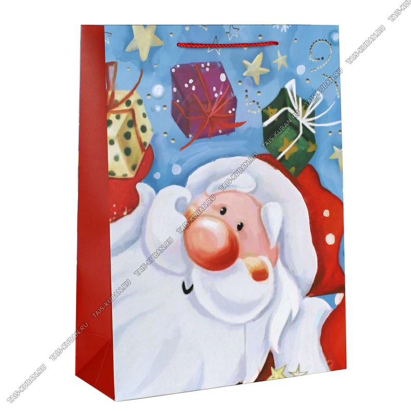 Пакет бумажный (h32х26см, дно9см) Пакет бумажный (h32х26см, дно9см) "Веселый Дед Мороз" красный (12)