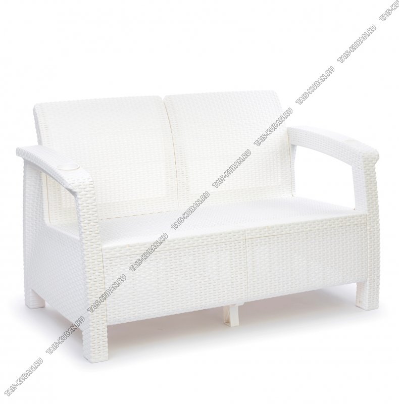 "Ротанг-плюс" белый Диван 2-х местн.(1270х70 h79см) нагруз до 106кг на 1место (1) Альтернатива