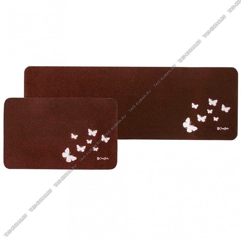 Коврик н-р 2шт (50х150+50x80см) "Велюр/Бабочки" коричнев, вышит.рис,ворс h6мм,тпр основа (10)