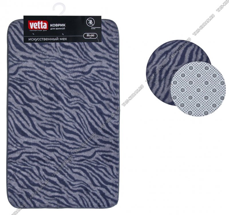 Коврик (50х80см) "Мех/Зебра" графит,"искусствен.мех" ,основа h0,8см "губка вспенен",противоскольз (5)