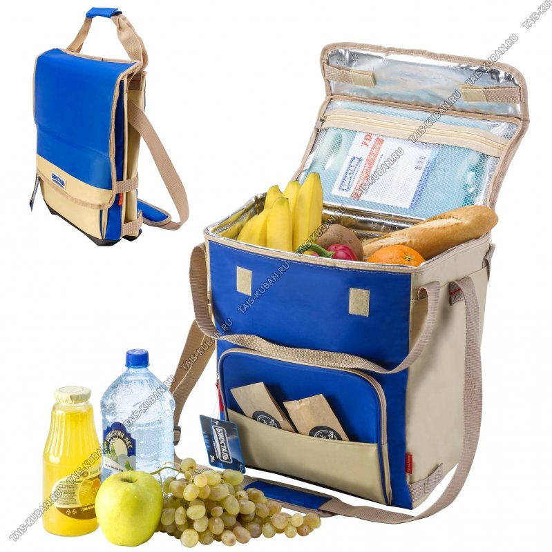 фольгированный PEVA 6мм/нейлон+PVC,внутренний карман в крышке,наружнный карман,плечевой ремень+2ручки,до 48часов,синий