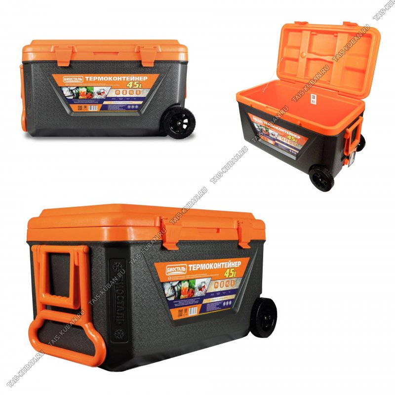 ударопрочный пластик,боковые ручки,2колеса,2-ная изоляция,клапан с винтовой пробкой для слива конденсата,t до 156час,на крышке место для 4-х подстаканников,черный с оранжевым (1)