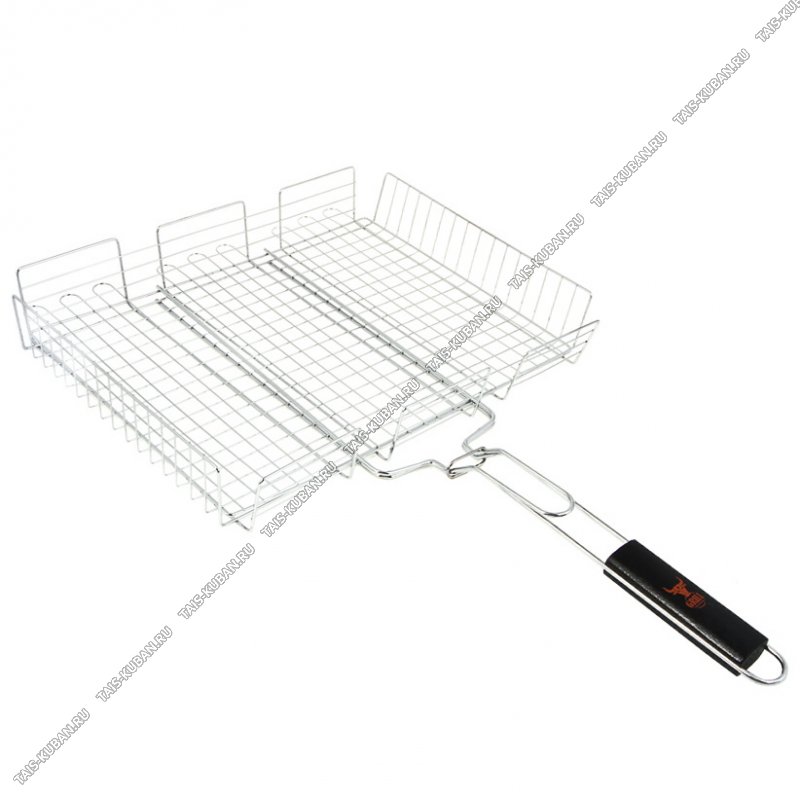 Решетка глубокая 40х30х7см, деревянная ручка, хромированная сталь GRILLBOOM