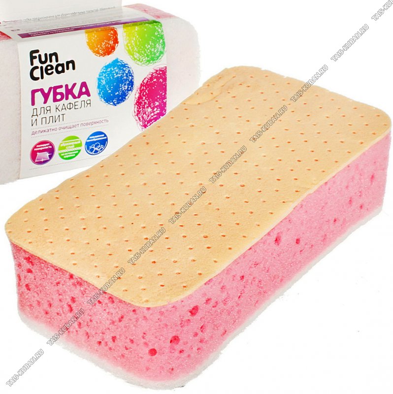 Губка д/уборки "коралл" 1шт (140х70х40мм) д/кафеля и плит,2-х слойн.чистящ/замша (30)