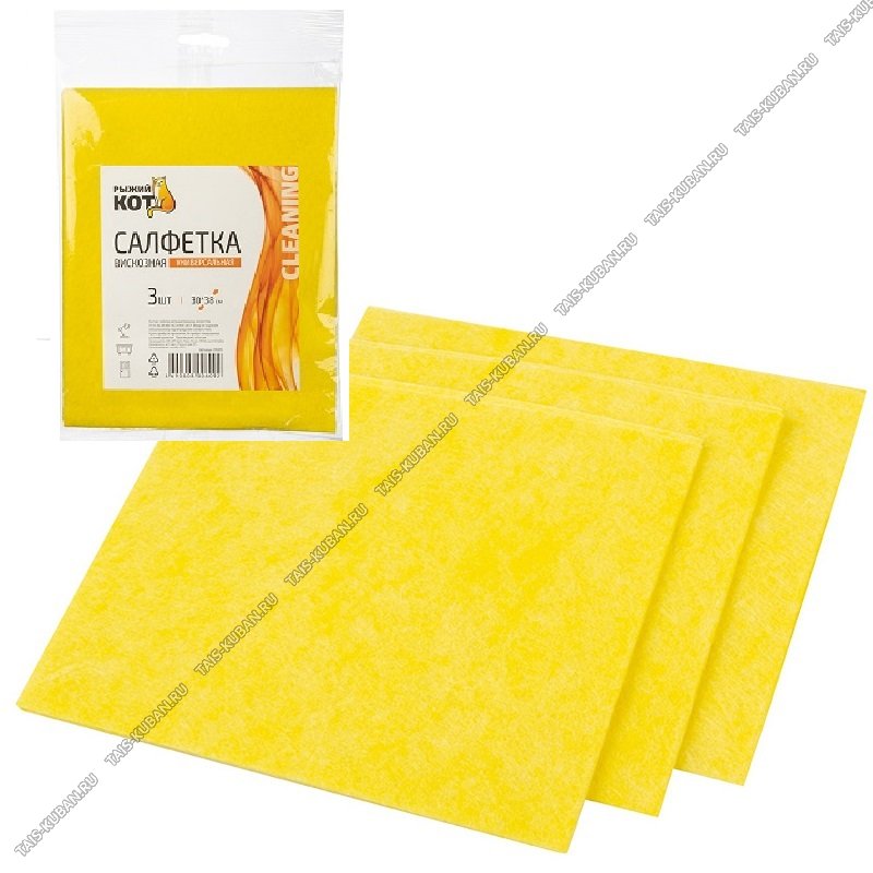 Салфетка вискозная 3шт (30х38см) 85г/м2, д/влажн. и сух. уборки, супервпит,неткан, цв.микс (100)
