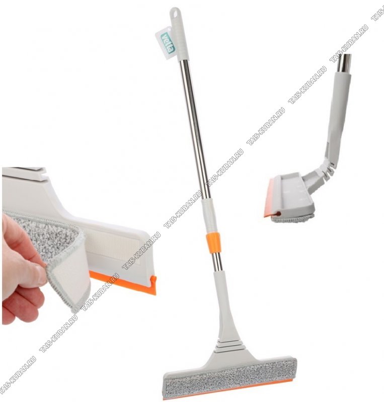 Окономойка телескопическая нержавеющая ручка L75-116см,насадка L28см насадка микрофибра на "липучке" /полипропиленовый водосгон,серо-оранжевый (1