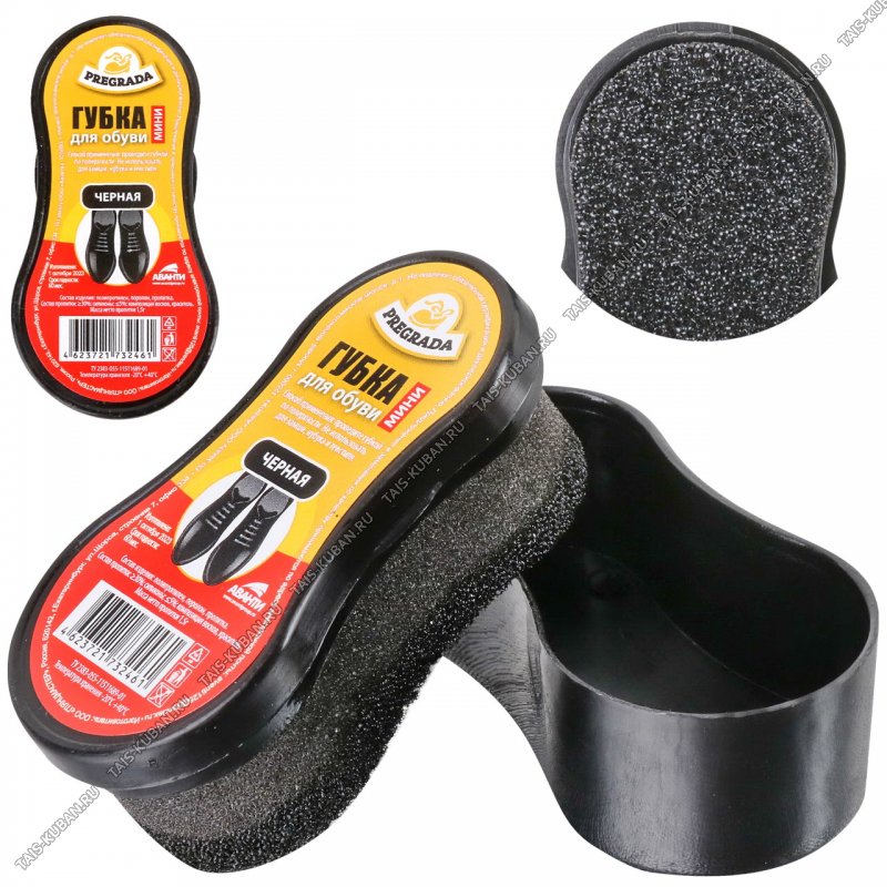 Губка-мини с пропиткой 7х3,5х3см черная для обуви и кожаных изделий, футляр (96)