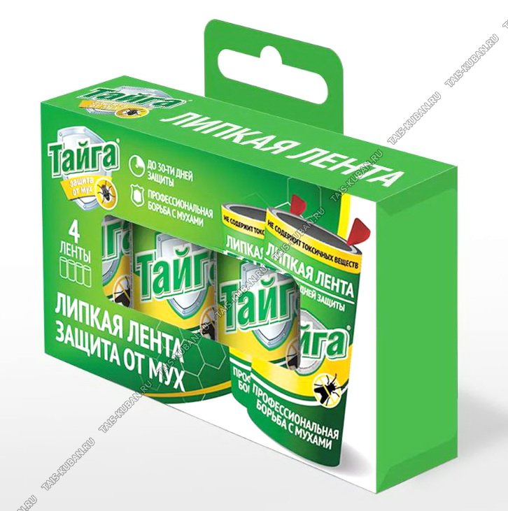 Лента липкая от мух 4шт (5х85см) "Тайга" до 30дн,с экстр.меда,растител.масл,уп.короб (48)