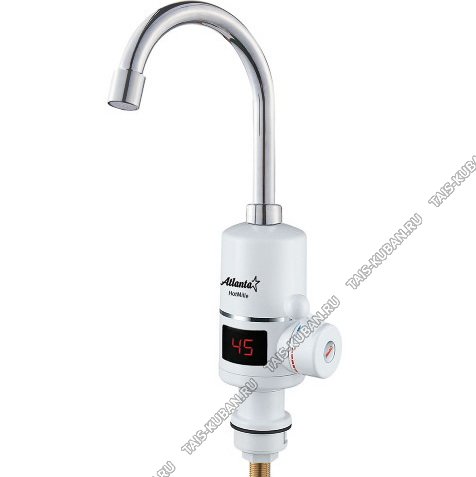 Водонагреватель "проточный" 3000Вт. высокий.излив,нагрев 30-85 °C,LED дисп, индик.t, авто.гидровлич.управлен, защит.от сух.вкл.тэна, защит.от перегрев, мгновен.нагрев