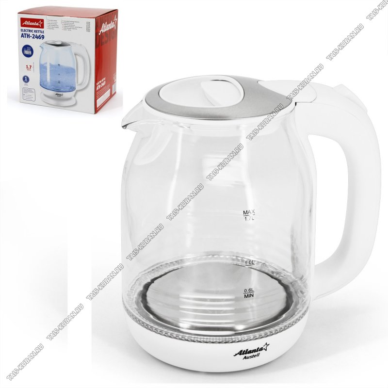 Чайник стекло 1,7л 2200Вт, белый (4) Чайник стекло 1,7л 2200Вт, белый (4)
