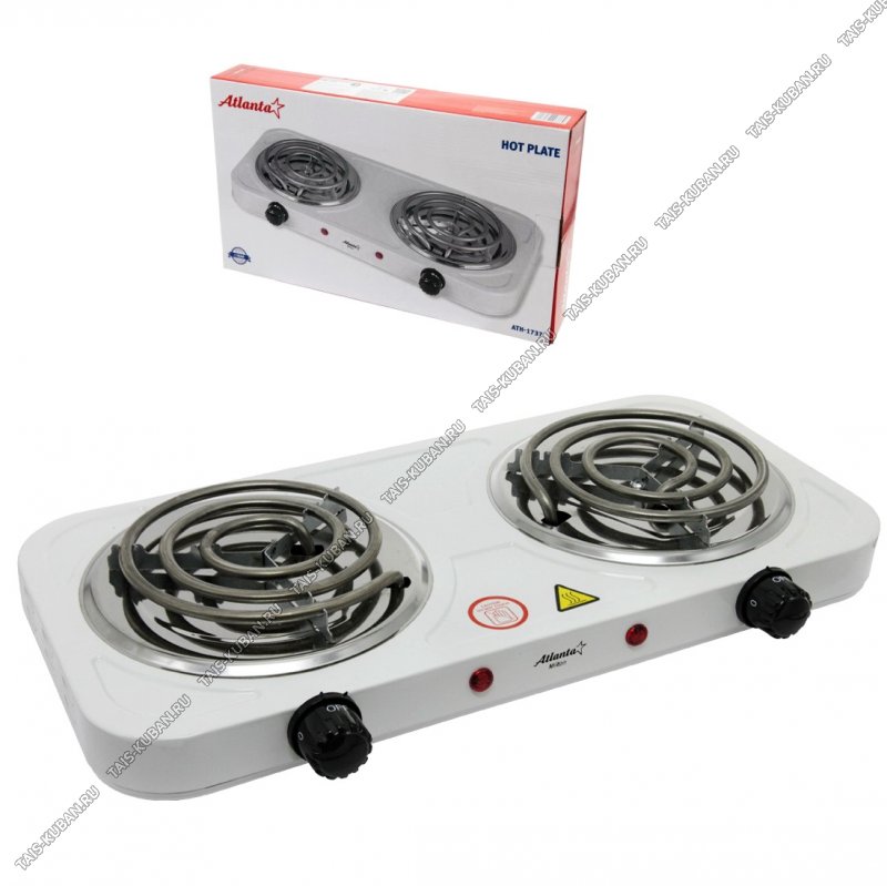 Плита электрическая 2конфорчатая Блин чугунный 1000+1000Вт.d140+140мм, 5режим t, регулировка мощности, индикатор работы, защита от перегрева, белый