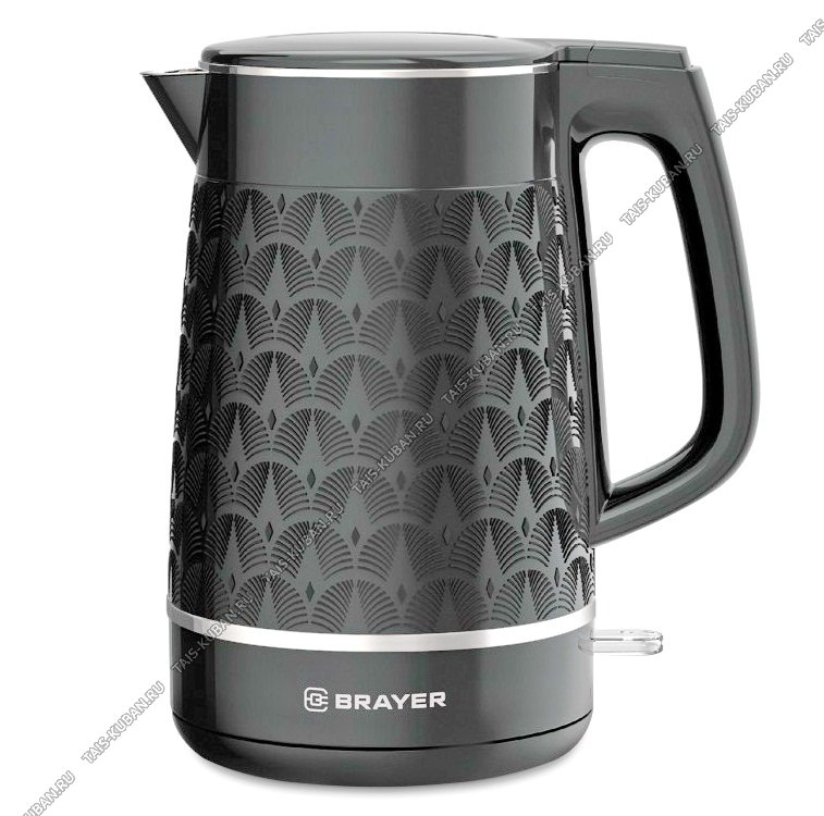 Чайник пластик+нерж. 1,7л 2200Вт 2-ная стенка (внутр.нерж сталь) диск,автооткл,защ.б/воды,пов.360,рельефн.узор на корпусе,черн (6)