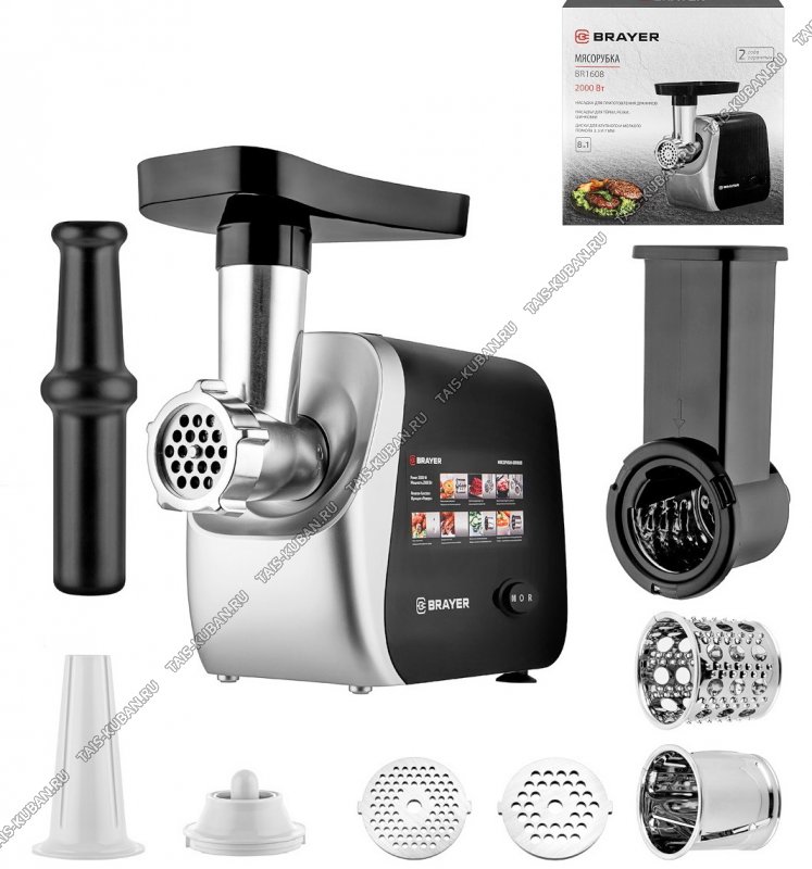 Мясорубка 2000Вт реверс, 2диска 5-7мм,2насад,черн/серебро Мясорубка 2000Вт реверс, 2диска 5-7мм,2насад,черн/серебро