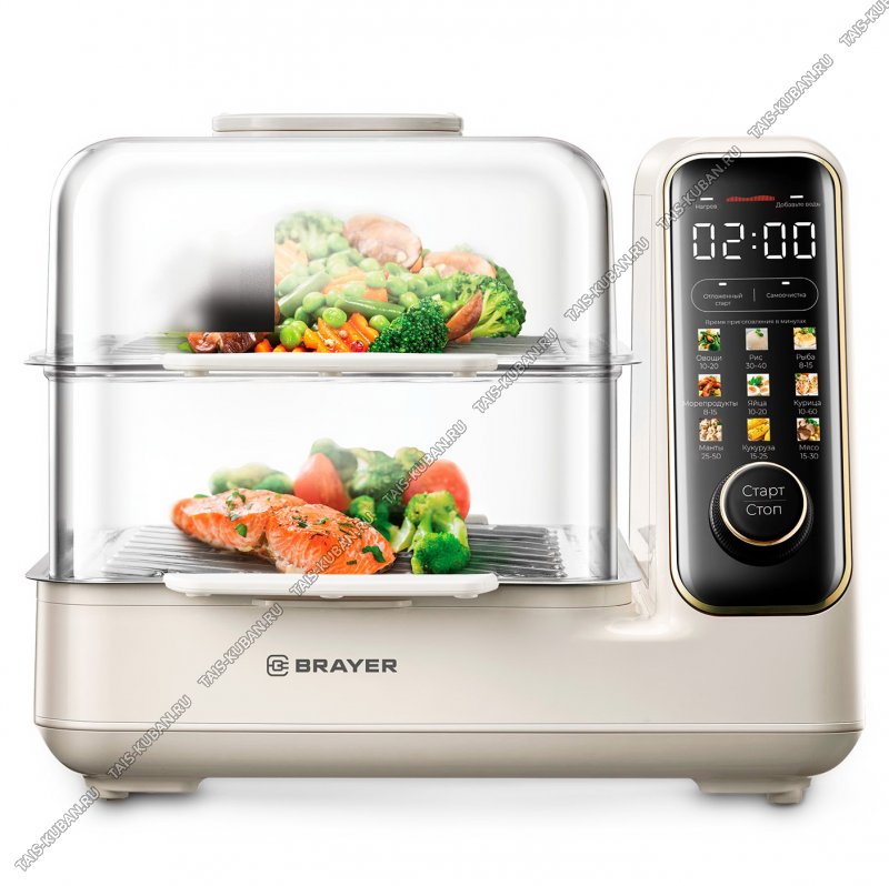 Корпус из высокопрочного термостойкого пластикаОдновременное приготовление двух блюдСъёмный резервуар для воды объёмом 2 лДолив воды во время приготовленияСенсорное управлениеLED - дисплейОтложенный старт 2 - 24чФункция самоочисткиЗвуковой сигнал по окончании приготовленияАвтоотключение при отсутствии водыПоддон для сбора сока