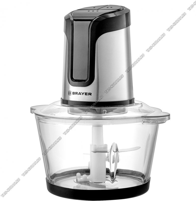 Измельчитель 800Вт 3скорости, стеклянная чаша 2л, 4 нержавеющих лезвия, LED-дисплей,корпус пластик+нержавейка, антивибрационный коврик, лопатка в комплекте, чёрный/серебро