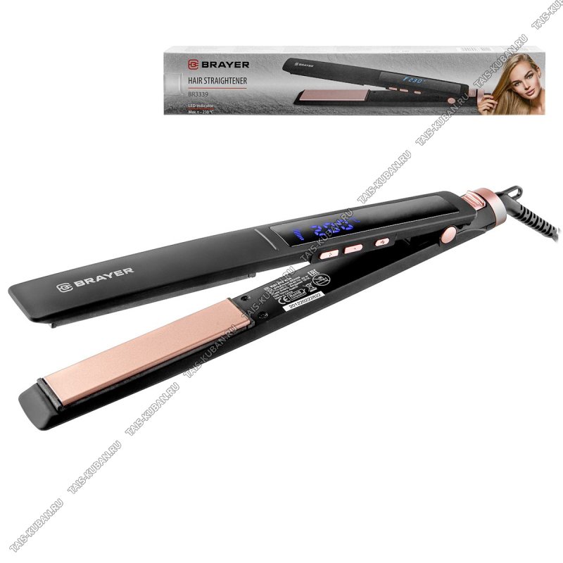 Выпрямитель д/волос керам. 52Вт пласт.(25х110мм),регул.t 110-230°C,LED диспл,автооткл,розов/черный (30)