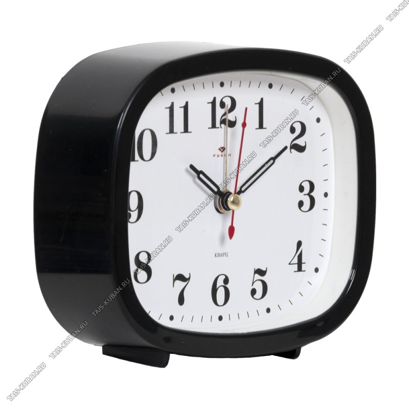 Будильник прямоуг. 12х10см "Черный" пластик, п/у (20)