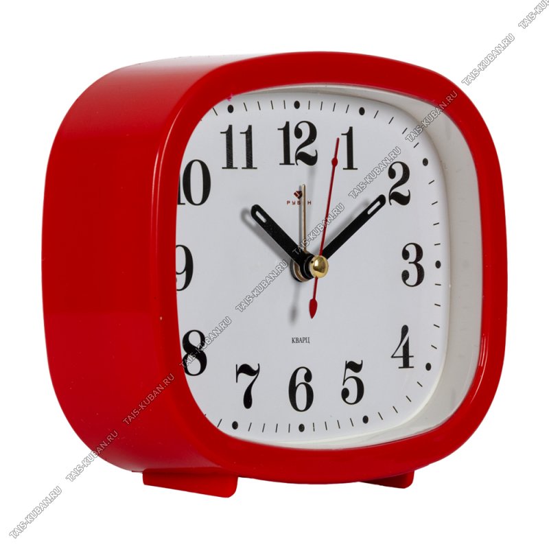 Будильник прямоуг. 12х10см "Красный" пластик, п/у (20)