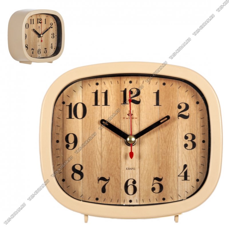 Будильник прямоуг. 12х10см "Дерево светлое" пластик, п/у (40)