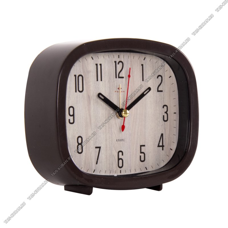 Будильник прямоуг. 12х10см Будильник прямоуг. 12х10см "Дерево темное" белый корпус, пластик, п/у (40)