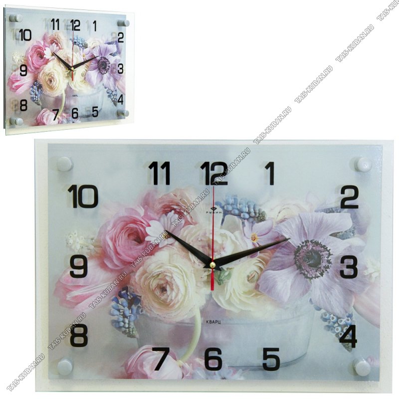 Часы (ДВП/стекло) (35х25см ) "Цветы садовые/Пионы" (10)
