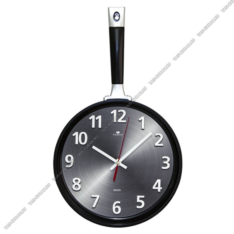 Часы (пластик) (25х43см) "Сковорода/Черная" (10)