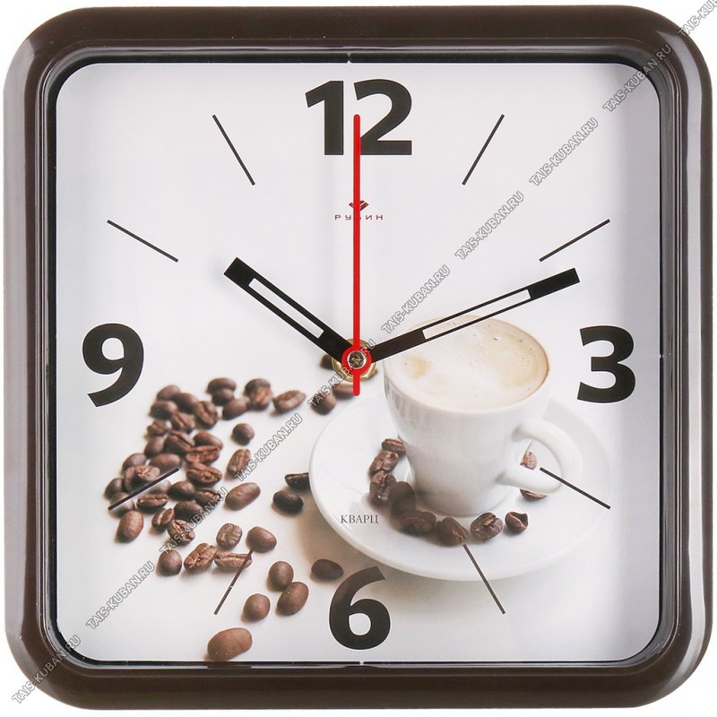 Часы (стекло/пластик) квадр.(22х22см) "Кофе" венге, п/у (5)